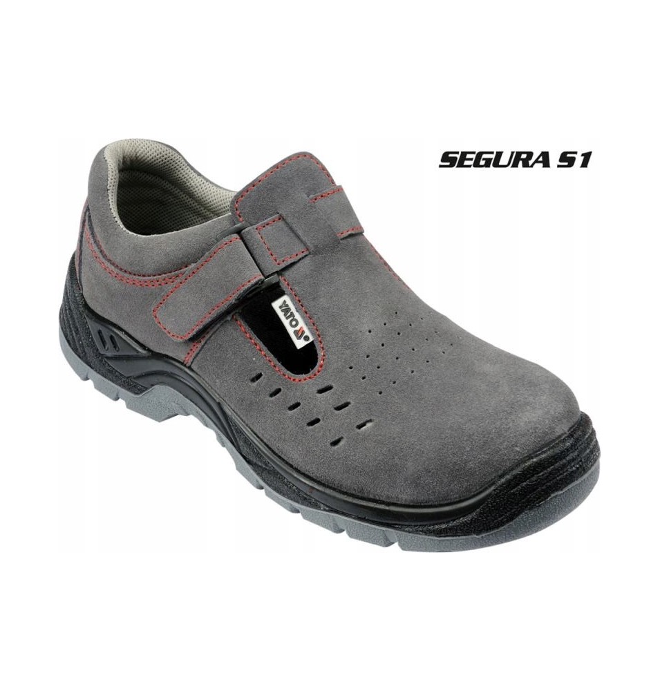 Sandały robocze YT-80465 z serii SEGURA S1 z wytrzymałym na uderzenia lekkim kompozytowym podnoskiem oraz w przewiewnej konstrukcji z cholewką wykonaną z wysokiej jakości skóry zamszowej.
