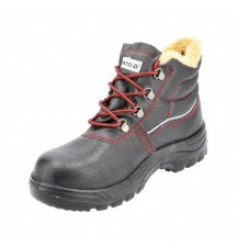 Trzewiki robocze ocieplane YT-80846 z serii TEZU S1P z wytrzymałym na uderzenia stalowym podnoskiem i z wkładką antyprzebiciową, która chroni stopę przed przekłuciem:.