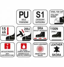 - stalowy podnosek wytrzymały na uderzenia z energią do 200 J oraz zgniecenia do 15 kN