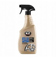 K2 FELIX to skuteczny płyn do mycia wszystkich rodzajów felg. Najlepiej spisuje się przy regularnym czyszczeniu obręczy. Jego formuła dokładnie myje felgi z osadów powstałych przez pylenie klocków hamulcowych i zanieczyszczeń drogowych. K2 Felix penetruje wszystkie szczeliny i wgłębienia w feldze, rozpuszczając znajdujący się w nich osad i nadając feldze połysk.