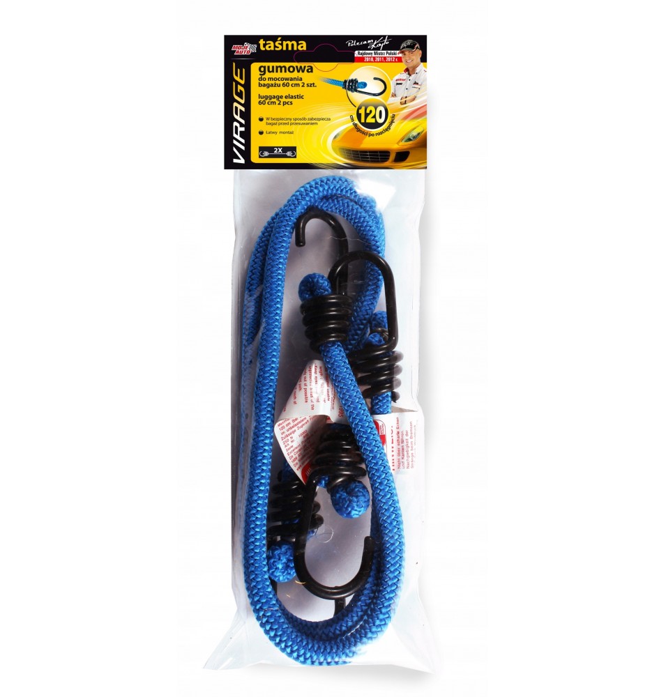 Moje Auto Virage Taśma gumowa do mocowania bagażu – 2 sztuki pozwala przymocować każdy bagaż. Przeprowadzka, zakup nowych mebli, rodzinny wyjazd na wakacje, transport roweru w bagażniku. We wszystkich tych przypadkach potrzebujesz odpowiedniego zabezpieczenia przewożonych rzeczy swoim samochodem. Taśma gumowa do mocowania pozwoli Ci w łatwy i szybki sposób zamocować ładunek. Dzięki temu zapewnia bezpieczeństwo sprzętom i bagażom, bez ryzyka ich uszkodzenia na skutek przemieszczania się w bagażniku. W szczególności służy do zabezpieczania plandek, by uchronić je przed silnym powiewem wiatru.