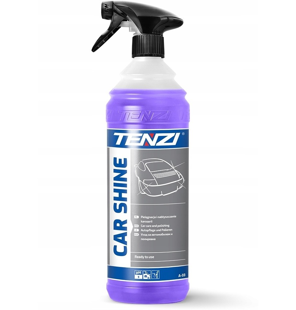 Nabłyszczanie karoserii. Gotowy do użycia preparat do nabłyszczania wszelkiego typu lakierów samochodowych (zwykłych, metalizowanych, nowych, starych) oraz innych powierzchni błyszczących (chromowych, lakierowanych drewnianych, plastikowych, szklanych). Prosty w użyciu, działający natychmiastowo, efektywny. Dzięki zawartości polimerów najnowszej generacji wypełnia drobne rysy na lakierze, wzmacnia kolor, usuwa drobne zabrudzenia, zacieki i plamy po twardej wodzie, ułatwia odparowanie. Zabezpiecza lakier przed bieżącymi zanieczyszczeniami oraz zmiennymi warunkami atmosferycznymi.