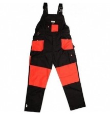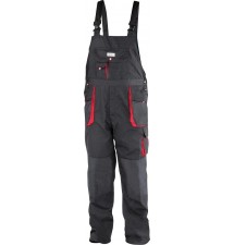 Spodnie robocze na szelkach typu ogrodniczki YT-8033 z jedenastoma kieszeniami, w tym 7 z zapięciem na rzep oraz specjalne kieszenie na nakolanniki. Materiał główny to mieszanka bawełny z poliestrem w odpowiednich proporcjach. Takie rozwiązanie pozwala wykorzystać mocne strony obydwu materiałów, m.in. dobre trzymanie ciepła oraz zwiększoną odporność na rozdarcie. Do połączeń materiału w miejscach najbardziej narażonych na rozdarcie zastosowano potrójne szwy.