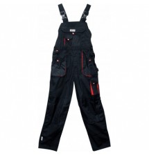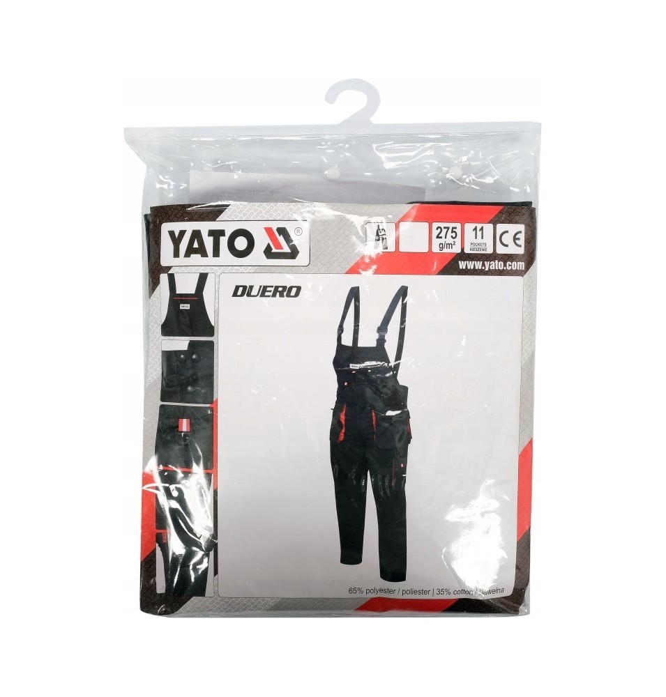 Spodnie robocze na szelkach typu ogrodniczki YT-8030 z jedenastoma kieszeniami, w tym 7 z zapięciem na rzep oraz specjalne kieszenie na nakolanniki. Materiał główny to mieszanka bawełny z poliestrem w odpowiednich proporcjach. Takie rozwiązanie pozwala wykorzystać mocne strony obydwu materiałów, m.in. dobre trzymanie ciepła oraz zwiększoną odporność na rozdarcie. Do połączeń materiału w miejscach najbardziej narażonych na rozdarcie zastosowano potrójne szwy.