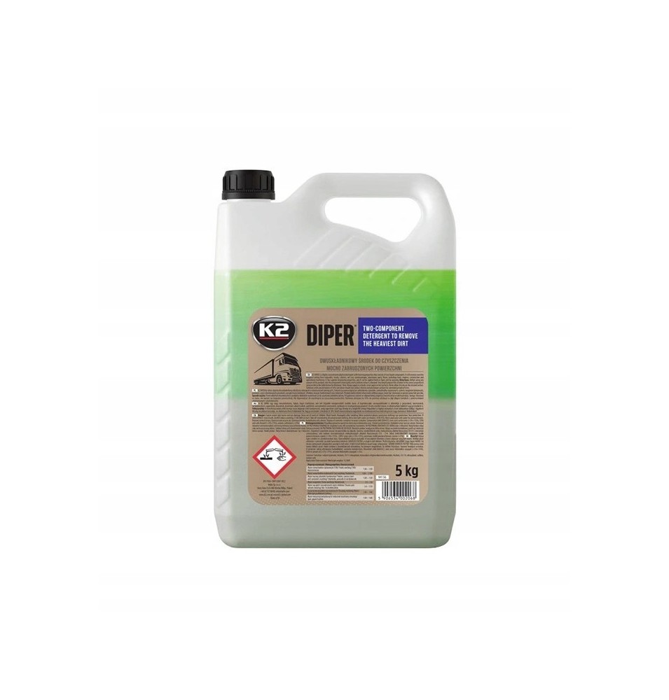 Koncentrat K2 Diper usuwa nawet najbardziej nieustępliwy, stary i zalegający brud. Doskonale sprawdza się jako płyn do mycia plandek, chemia do mycia samochodów ciężarowych czy piana do mycia maszyn.